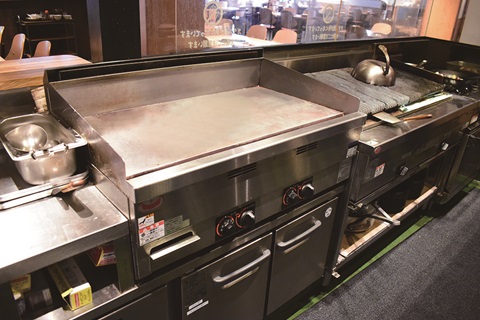 そしてチャーブロイラーの隣にはグリドルが設置されている。〈レストランKANTO〉では白老牛のステーキ、ハンバーグに加えてハンバーガーもラインアップしており、ステーキ、ハンバーグはチャーブロイラー、ハンバーガーのパテはグリドルと使いわけているとのこと。