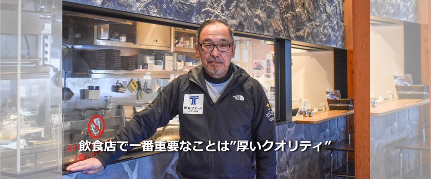 ■〈徳寿ファーム〉副場長兼〈レストランKANTO〉店長の長崎氏。