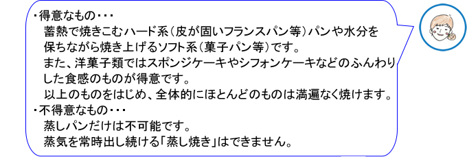 下からの熱で生地が持ち上がり、上からの熱で焼き色などをつけます。