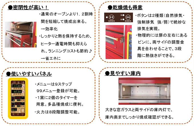 オーブンの中に熱を保持しながらその蓄えている熱でモノを焼きます。 |