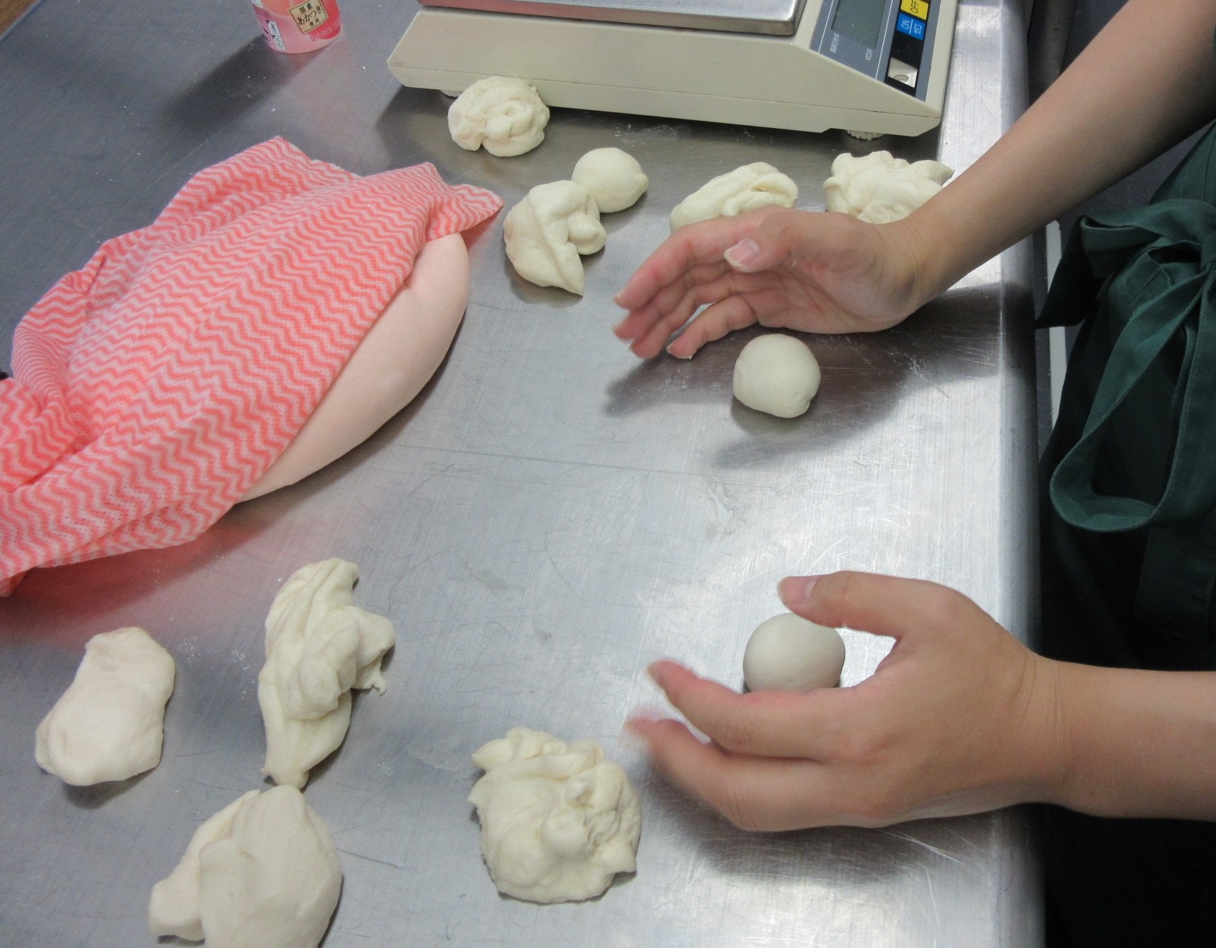 あんこが30~50g入ります。あんこを包む ことを「包餡(ほうあん)」といいます。 |