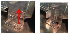 | ①2カ所の蝶ネジを緩める。 | ②蝶ネジで固定されていた板を 下側へスライドさせる。 |