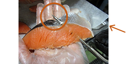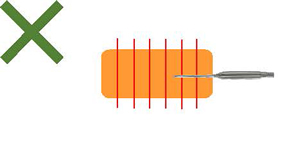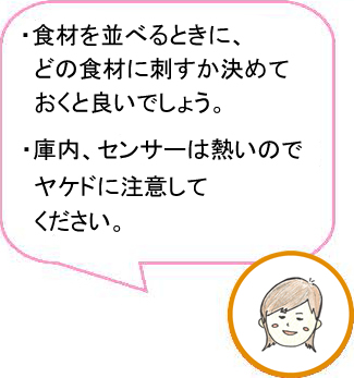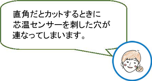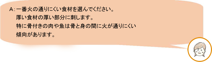 ⇒計測ポイントが1点のみのため、 突き抜けると正確な芯温が計測できません。 センサーの先端を食材の厚い部分に 刺さなければいけません。