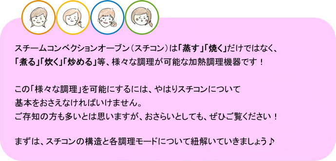 簡単に言うと、コンベクションオーブンと蒸し器を組合せた機器です。