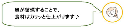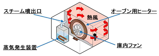 庫内ファンにより熱風を強制対流させるオーブンに、蒸気発生装置を 取り付けた機器。