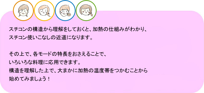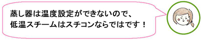 *スチーム1・スチーム2の違い スチーム1:蒸気をコントロールして、100℃を保つ。