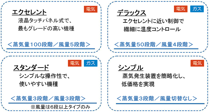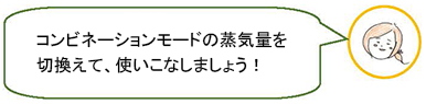 コンビネーションモードの蒸気量の切替の段階が異なります。 |